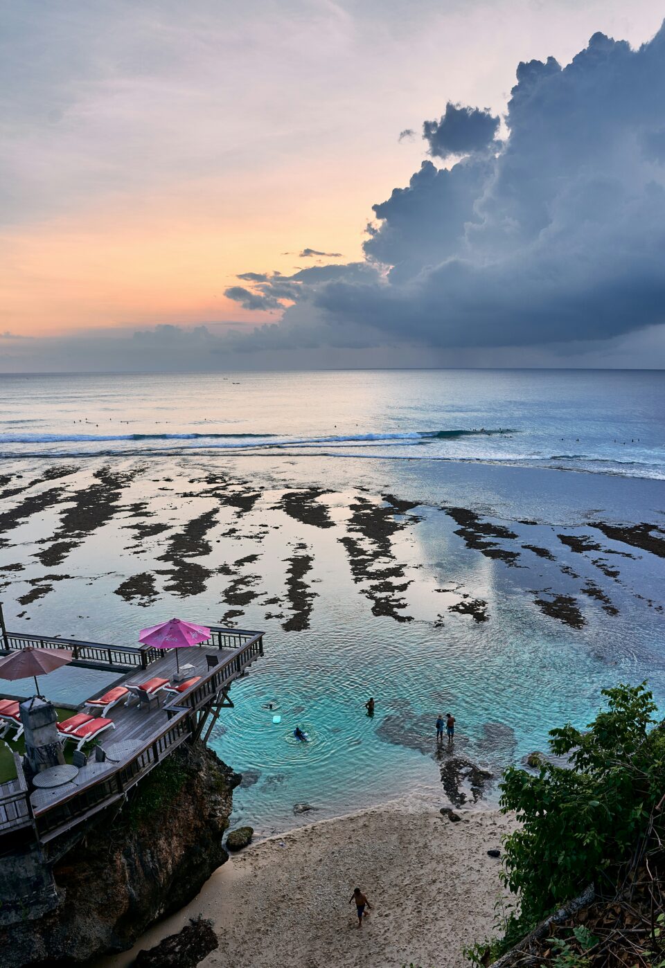 Sanur propose une quiétude rare, avec sa promenade bordée d’arbres et sa mer calme qui accueille les premiers pas du matin. Seminyak et Canggu vibrent sous l’énergie des vagues et du surf, des cafés bohèmes et des fins de journée dorées. Limbaran devient magique lorsque les tables s’installent dans le sable et que le parfum du poisson grillé se mêle au souffle de l’océan. Plus loin, Uluwatu impressionne par ses falaises immenses et son horizon sans fin, où la mer semble respirer plus profondément.