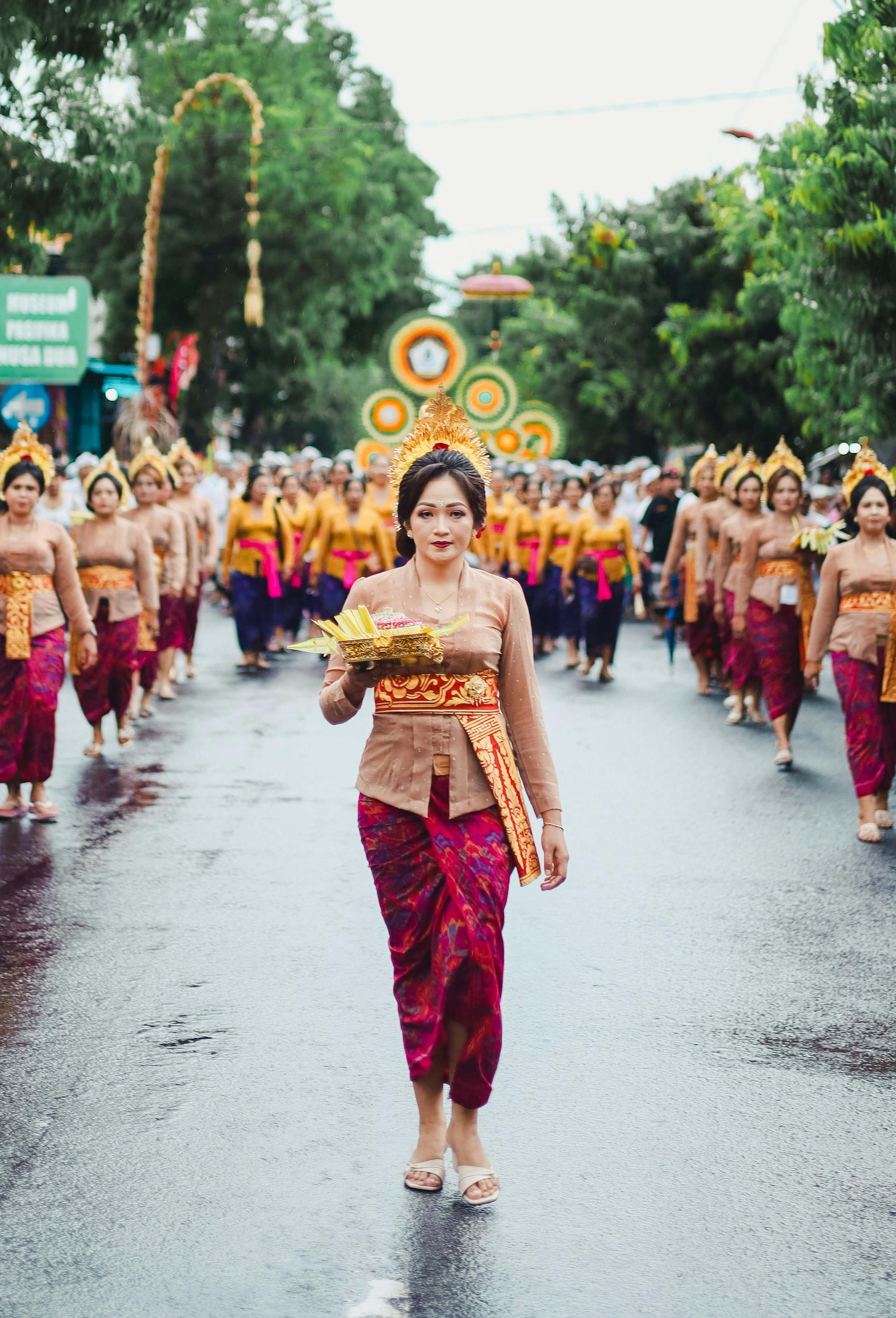 Les temples vivent au rythme des cérémonies, des chants, des gestes précis. Les familles se rassemblent en tenue traditionnelle, les enfants apprennent tôt la beauté des rituels. La culture se reflète dans l’art, la danse, les offrandes, dans chaque détail pensé pour maintenir l’équilibre.